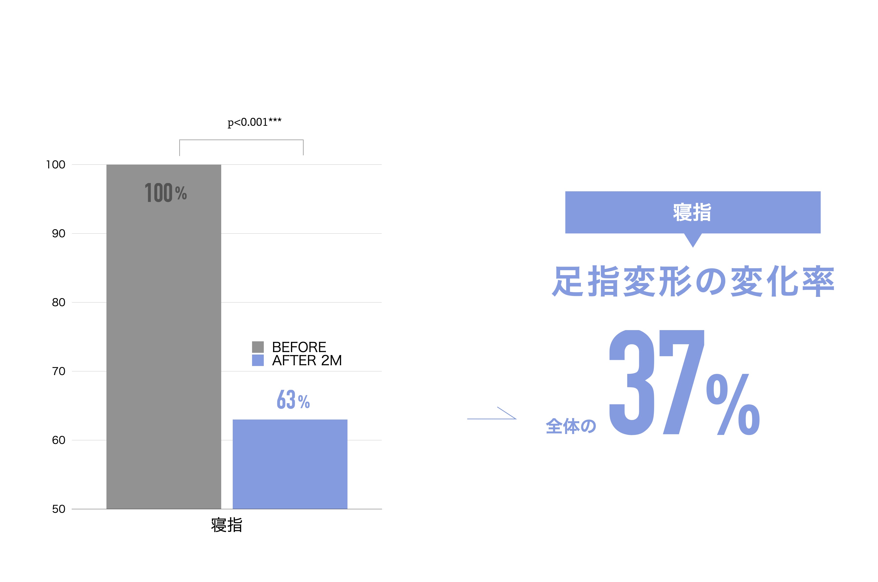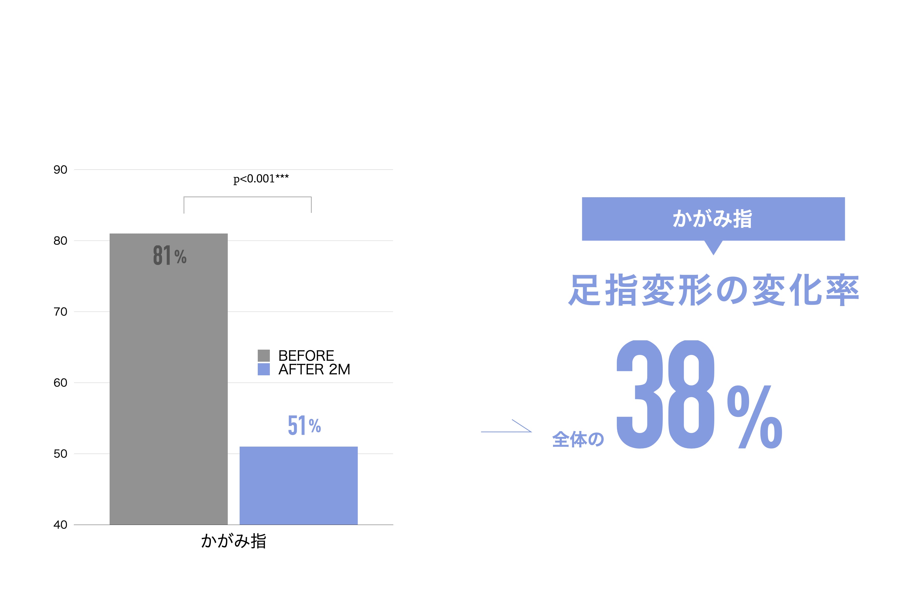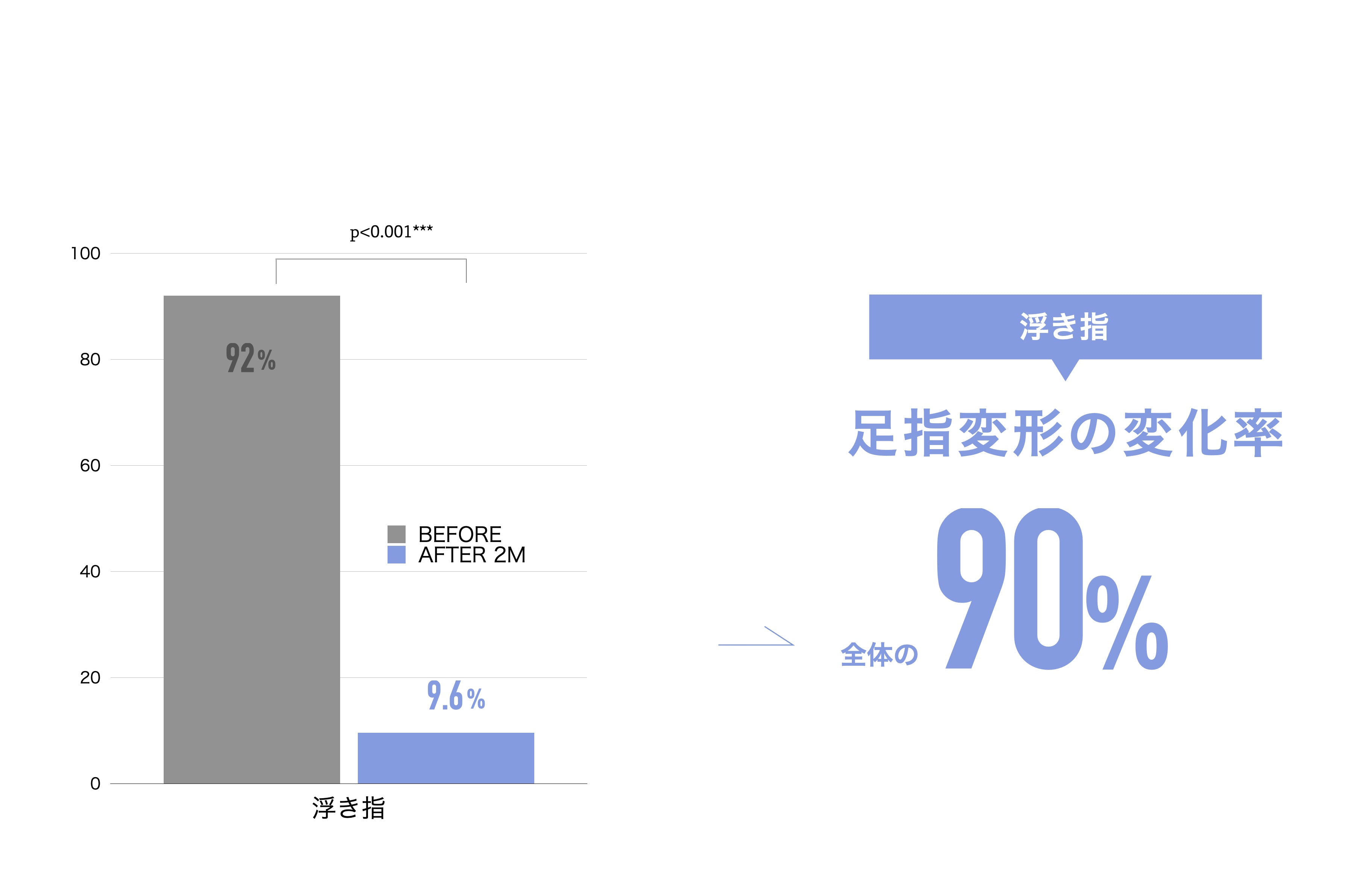8週間目の平均値は、開始時と比べて、浮き指率に90%の変化が見られました。