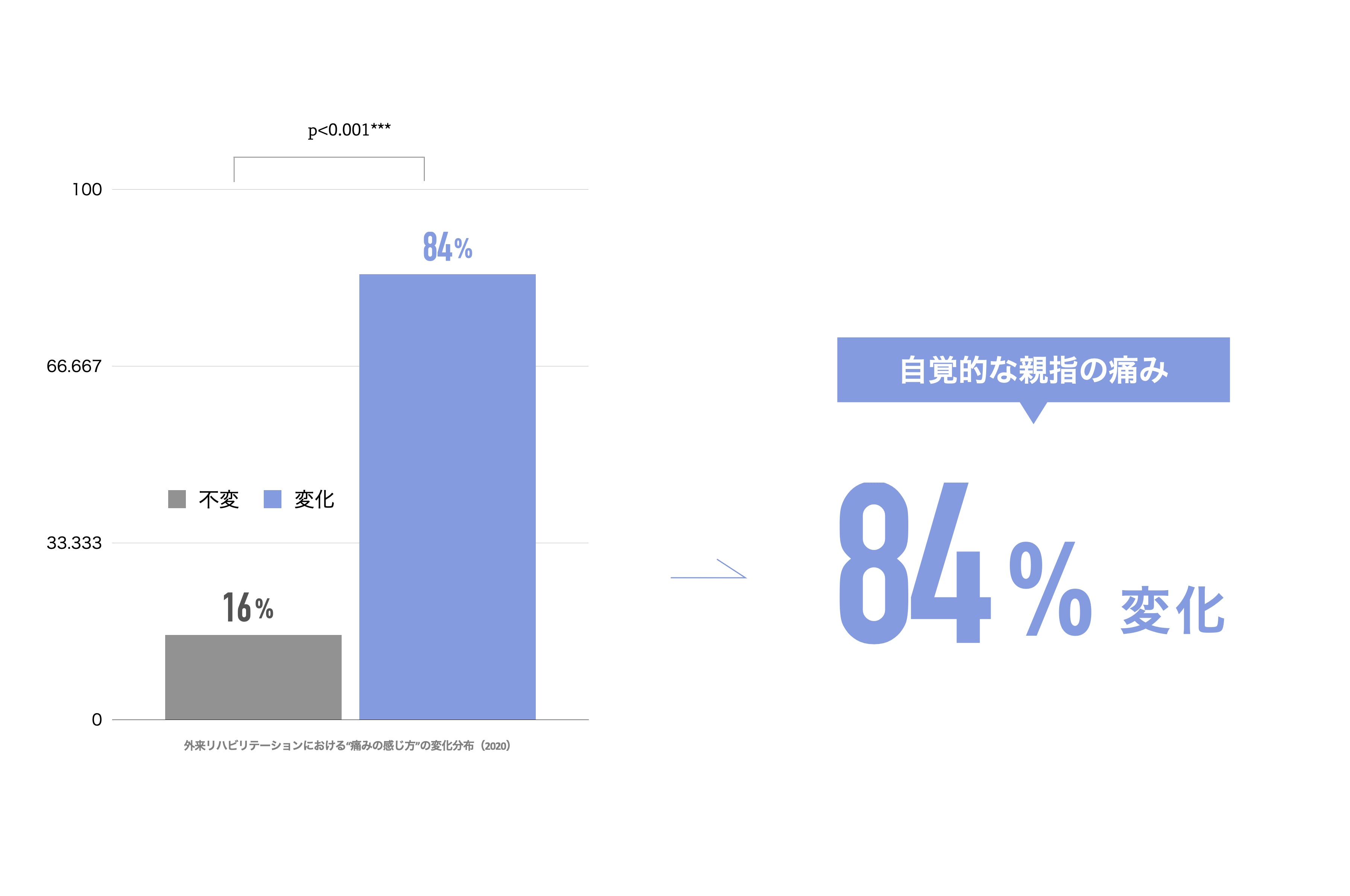 2週間目の平均値では、開始時と比較して 痛みの感じ方に変化が生じた方が多い傾向 が見られました。