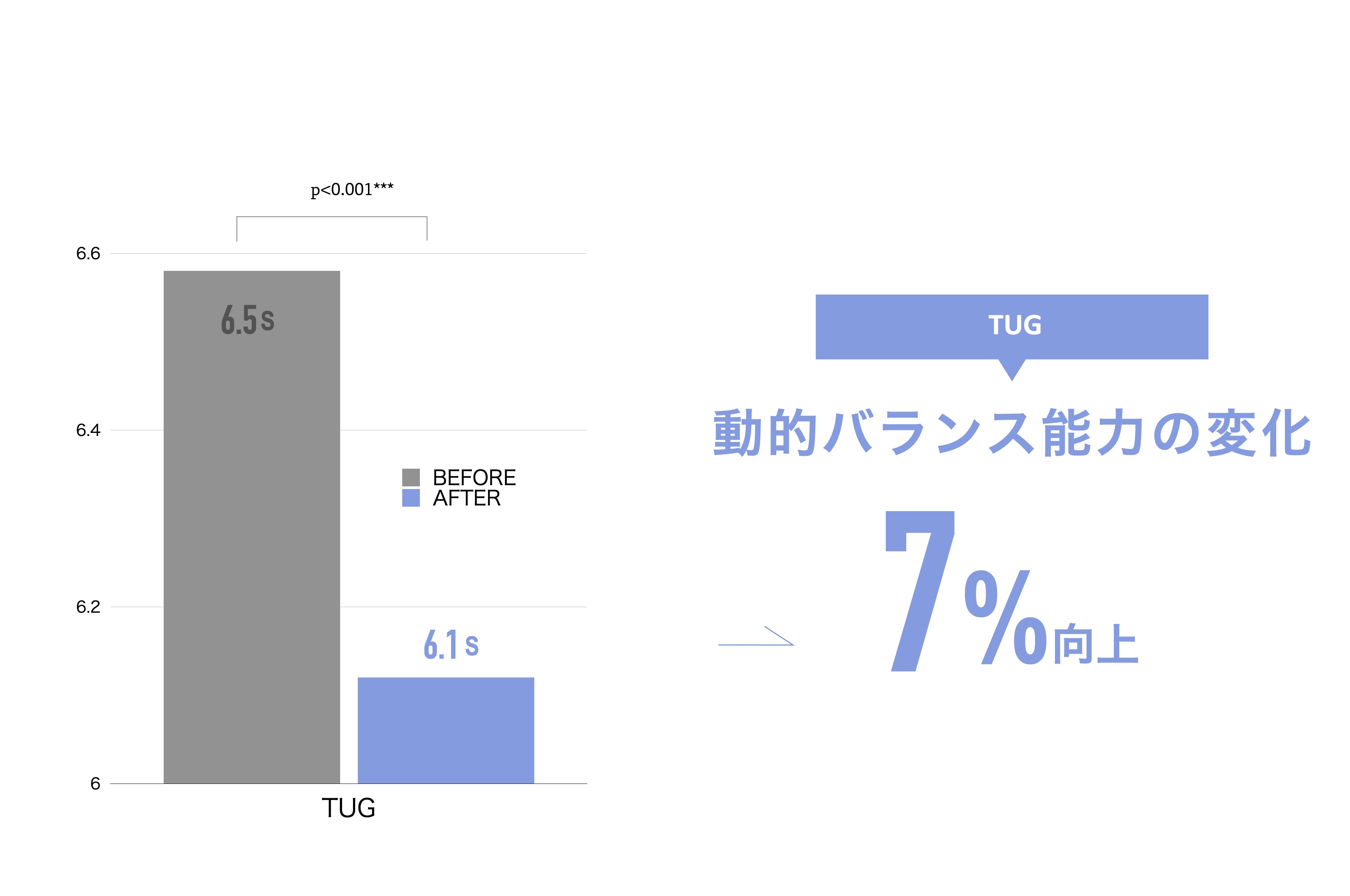 SOCKS装着後の平均値は、開始時と比べて、歩行速度が7%改善。転倒予防の作用が確認されました。